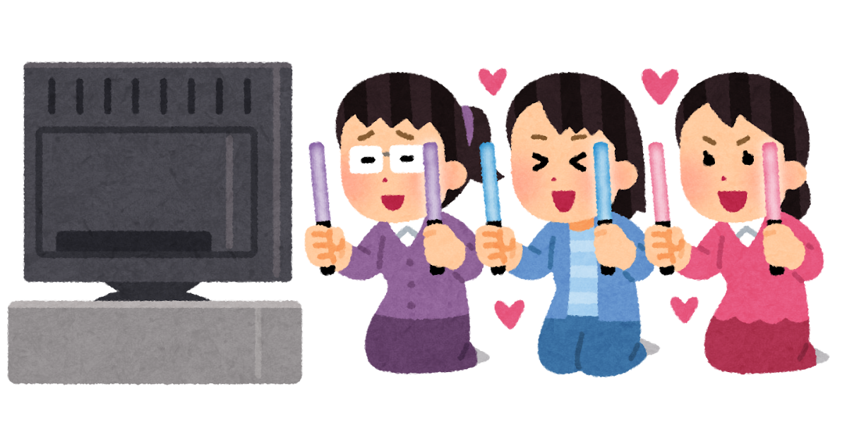 テレビの前でペンライトを振る人たちのイラスト かわいいフリー素材集 いらすとや